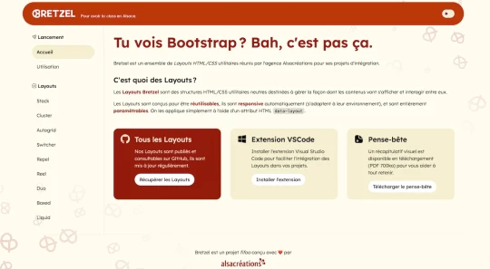 Bretzel est un ensemble de Layouts utilitaires modernes et réutilisables, conçu par l'agence web Alsacréations pour simplifier la création de mises en page responsive.